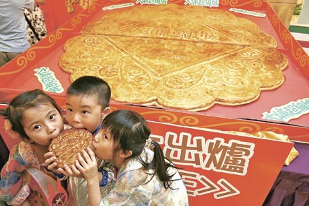 中新网9月7日电 直径达80吋宽的蛋黄白莲蓉月饼,昨日现身香港大埔超级城,率先与港人庆贺中秋。