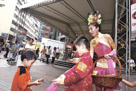 中新网9月11日电 传统月饼近年被诟病高热量高胆固醇,传统饼家奇华即推出“有营月饼”,卖点是热量较传统月饼低一半,含糖量亦不足原来的5%,昨日在铜锣湾闹市向市民免费派发,小朋友始终爱吃,就算面对性感的嫦娥姐姐,还是更关心手上的月饼。