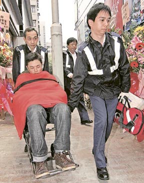 星岛日报摄影记者黄颂伟采访期间被旅游度假计划公司职员殴伤,一度昏迷,需坐轮椅送院治理。 明报图