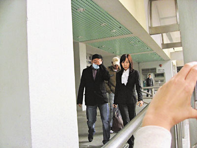 被告提讯后,在律师及友人的陪同下迅速离开法庭。戴上口罩的被告在传媒包围下拍照时,轻松大方地步出法庭。