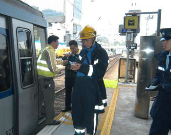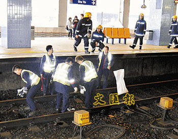 消防人员在冒烟列车开走后继续检查。(图片来源:文汇报)