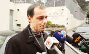 “资料图:2008年1月30日”二零零八年一月三十日,欧文龙的辩护律师施展鹏(右)抵达澳门终审法院。当日,澳门前运输工务司司长欧文龙案最终宣判:欧文龙被控受贿、清洗黑钱、滥用职权等罪合计判处有期徒刑二十七年,罚款二十四万元并没收财产。 中新社发 史利 摄