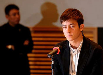 二月二十一日,涉及艺人不雅照片的陈冠希在事件后首次在香港会见新闻界,交代事件﹐众多传媒前往采访。 中新社发 武仲林 摄