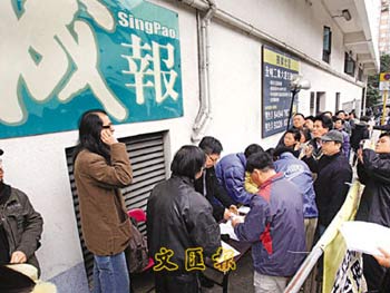 《成报》被要求在21日内缴交400万元强积金欠款。图为前成报员工较早前到成报大厦门外抗议欠薪。