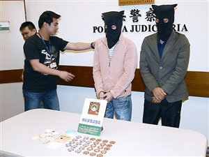 图:两男子涉嫌偷豪赌客290万筹码被捕。(图片来源:澳门日报)