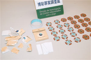 图:疑犯烟盒贴双面胶纸盗200多万筹码。(图片来源:澳门日报)