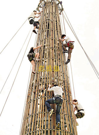 市民4日在“包山嘉年华2008”中一尝攀爬包山的滋味。(图片来源:文汇报)