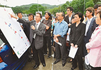 立法会共有7名议员到发生大车祸的事故地点考察,听取路政署官员和警方交通部介绍事发路面的交通安全安排。