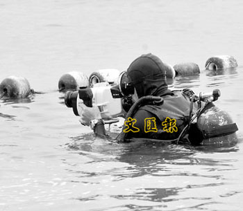承办商派出蛙人下海检查防鲨网。(图片来源:文汇报)