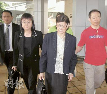 梅妈(右二)遭范家碧律师行入禀追律师费,律师行指她早前开出空头支票,至今仍未缴清20万元律师费,早前范家碧律师(左)曾陪同梅妈出庭。(图片来源:明报)