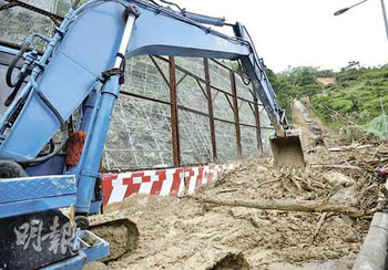 路政署总工程师游坤伟则指出,山泥倾泻最严重的羌山道,由于地底下的土壤严重流失,地基出现问题,署方需动用1万至1.2万吨石角,填补足有20米的地基,再在上面重铺路面,需时至少一星期。