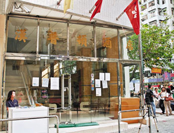 旅发局派员在酒店门外设柜位协助旅客。(图片来源:文汇报)