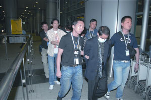 当三人办理晚上8时15分飞往印度尼西亚雅加达航班的登机手续时,一直暗中监视的司警探员立即采取行动。探员发现三人利用腰封将毒品“冰”收藏在腰间,以及将包装成棍状的毒品藏在内裤内。探员在各人身上均搜获近2公斤毒品“冰”,一共有5.4公斤,市值约210万元。