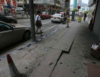 另外,高温下土瓜湾北帝街出现怀疑“热爆街”事件,行人路一幅约两尺宽路面,突然石屎爆裂拱起约4寸高,不排除与天气过热有关。