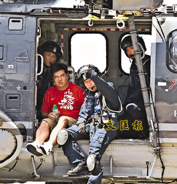 在东龙岛爬山期间怀疑中暑的男子由直升机送院。(图片来源:文汇报)