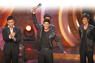 中新网8月3日电 “2008香港先生竞选”终尘埃落定,由12号大热门朱允崇以迷人眼神和灿烂笑容,当选“香港先生”及勇夺“盛年组”冠军,另“少年组”冠军则由6号罗天宇爆冷跑出。赛后大班外籍女评判冲上台向朱允崇献吻祝贺,他表现得来者不拒,一一受落。