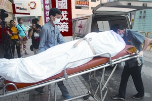 死者遗体由仵工送往殓房处理。(图片来源:澳门日报)