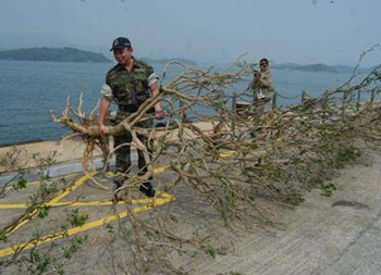 香港水警检获一批“九里香”树。(图片来源:大公报)