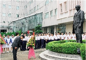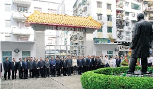 中新网10月10日电 据澳门日报报道,为纪念辛亥革命97周年,澳门社会各界人士9日在镜湖医院孙中山铜像前集会,向孙中山铜像敬献花篮,缅怀伟大的革命先行者孙中山。