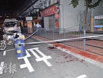 中新网10月29日电 据香港《文汇报》报道,香港屯门28日凌晨发生疑涉黑帮执行家法式砍人案。一名男子在酒吧泡吧后离开,突被七人穷追百米施袭,惨遭狂砍双手导致手筋折断倒卧血泊,逞凶者逃去。伤者经送院救治,情况严重。