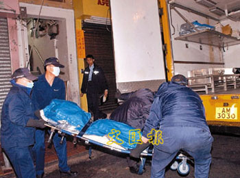 荃湾新村街被杀凤姐尸体,由仵工送往殓房。(图片来源:文汇报)