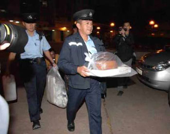 警员检走一个汤煲,疑有人下药迷昏子女再施毒手。(图片来源:大公报)