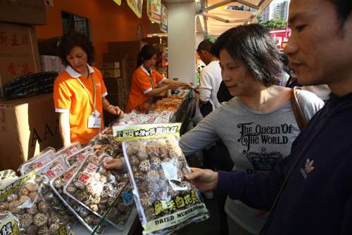 香港工展会平价冬菇受市民欢迎。图片来源:香港大公报