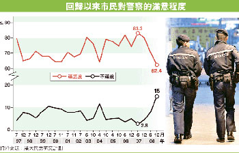 廖也说:“由于市民对公务员、公职人员要求高,加上以往警方满意度都很高,稍有行差踏错,影响便会较大,相信在近期事件影响下,市民要一段时间才能回复信心。”
