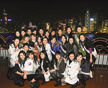 虽然天气寒冷,但来自各国各地的佳丽均觉得机会难逢,不怕寒风吹袭,在甲板上观赏这“东方之珠”璀璨的夜景,不少佳丽拿出相机拍照留念。