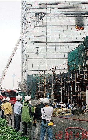 中新网3月6日电 据澳门日报报道,澳门孙逸仙大马路一号湖畔工地5日下午再发生纵火事件。地盘9楼一装修好的房间离奇起火,火舌飞舞,浓烟四溢。由于地盘完全装上玻璃幕墙,大量浓烟无法散去,反沿楼层梯间直卷楼上各层,令170多名工人无法逃生,被逼在两防火层暂避。