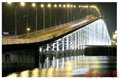 中新网3月16日电 据澳门日报报道,澳门三条跨海大桥照明系统去年底在台风中受损及被“水老鼠”偷窃,有关单位耗资1800多万元进行大规模维修。有关工程已全部完成,入夜后澳氹间海面再现“长虹”。