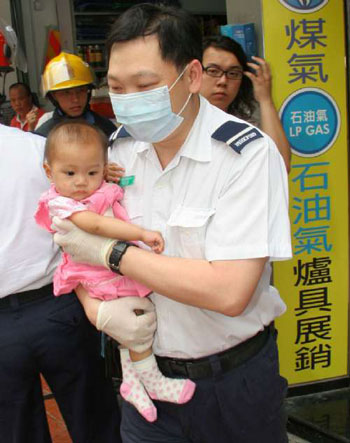 其时,陈自己也感到手一阵赤痛。“用鼻一嗅,我已想到是硫酸之类。”然后,他带受伤的一对南亚裔男女,走到附近檐篷躲避。走入檐篷,他发现年轻男子杨×伦(译音,约23岁)及未满1岁的女婴同被溅伤。