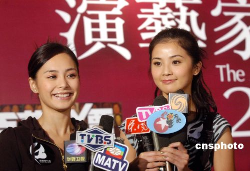 10月3日,香港乐坛组合Twins出席“演艺家年奖2006”选举新闻发布会。Twins获提名“我最喜爱组合”选举,并接受传媒访问。中新社发 邓庆乐 摄