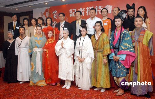 10月20日,香港舞蹈团为庆祝成立廿五周年,特别制作音乐舞蹈剧《笑傲江湖》,并举行记者会。香港乐坛组合2R两位成员参与演出,并与剧中主要演员及赞助商于会上合照。该剧将于十一月十八及十九在香港文化中心大剧院公演。中新社发 邓庆乐 摄