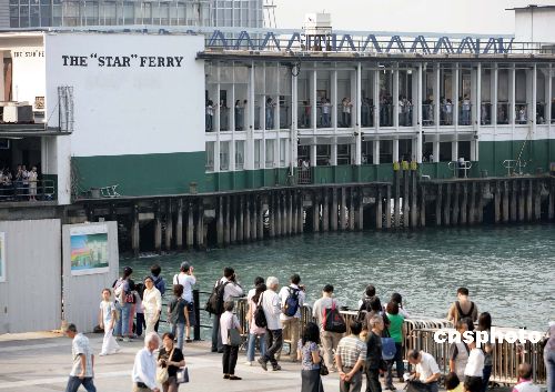 有48年历史的香港中环天星码头将于11日深夜12时关闭,为纪念这个历史时刻,天星小轮将举行“慈善告别航”,而码头的钟楼在12日零时连续鸣钟12次,其历史使命将随旧码头灯光熄灭而圆满结束。10日,大批市民、游客依依不舍到天星码头缅怀一番。中新社发 洪少葵 摄