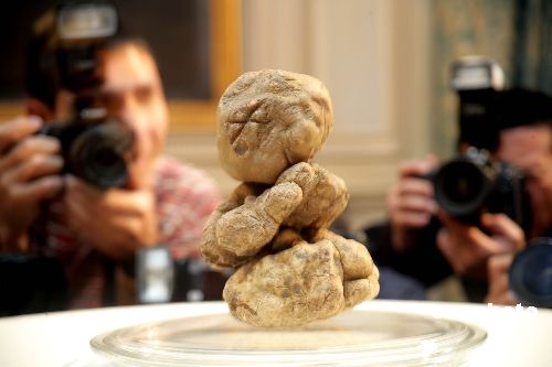11月14日,香港丽嘉酒店向传媒展示以1,250,000港币在国际拍卖会投得的一颗1.51公斤的白松露菌。白松露菌是当今被誉为美肴中的钻石,亦是世界上最贵的食品。据悉,由香港商人胡应湘夫妇投得。中新社发 洪少葵 摄