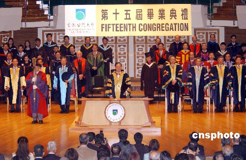 香港特首曾荫权13日以香港公开大学校监身份,主持第十五届毕业典礼,并颁授荣誉博士学位。中新社发 蔡蔓莉 摄