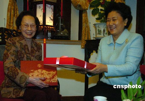 全国政协副主席、统战部部长刘延东,14日下午看望澳门知名人士澳门妇联总会荣誉会长何丽贞女士。中新社发 宋吉河 摄