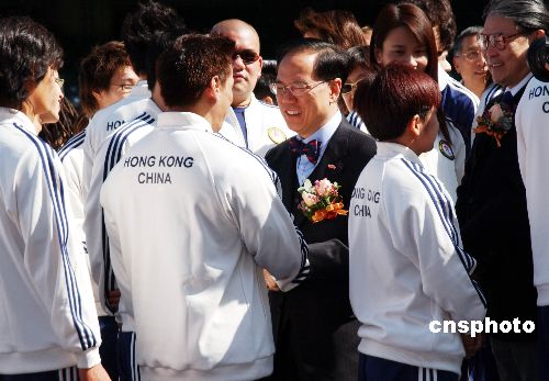 为庆祝香港代表队在第15届亚运会上获得历届最佳成绩,香港体育协会暨奥委会12月19日在大球场举行祝捷会。中新社发 蔡蔓莉 摄