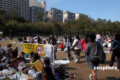 1日,不少海外佣工在维园享受元旦假期的乐趣。香港新修订禁烟法例在当日起生效,所有食肆、办公室及康文署辖下公园全部禁烟。中新社发 谭达明 摄