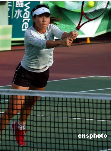 香港“屈臣氏蒸馏水世界网球冠军挑战赛”将于3至6日在维园举行。今届其中参赛选手、中国网球女将郑洁1日率先在表演赛上阵。中新社发 谭达明 摄