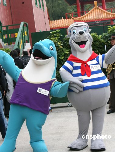 1月10日,香港海洋公园举行30大寿大喜庆活动,公园职工、高管、卡通人物齐齐参加。现场舞蹈派对、美食品尝、纪念品和换领券以及花卉展览等喜庆节目,更是让嘉宾们在吃喝玩乐中回忆海洋公园往昔带来的欢乐。图为公园卡通人迎接来宾。中新社发 王丽南 摄