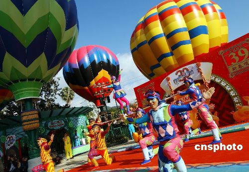 为迎接猪年,香港海洋公园2月7日宣布将于农历新年期间,推出两项富节日色彩的节目“大团拜”及新景点“七彩升空天地”,一连串的庆祝节目包括威水笨猪跳、“升球人”将为游人呈献杂耍奇技、穿上传统中国唐装的威威狮令及其一众好友、福禄寿三星将与大家拜年等。中新社发 蔡蔓莉 摄