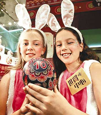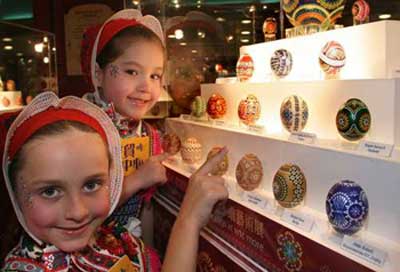 中新网4月4日电 据香港文汇报报道,拥有过千年历史,精于制造复活蛋的德国索柏少数民族,昨(三日)在世贸中心亲手示范精绘各式图案精致、色彩绚烂的彩蛋,同场更会展览250枚手绘彩蛋,由小至鸽蛋,到大至鸵鸟蛋都有。工艺师更特别绘画一彩蛋,预祝香港回归十周年。
