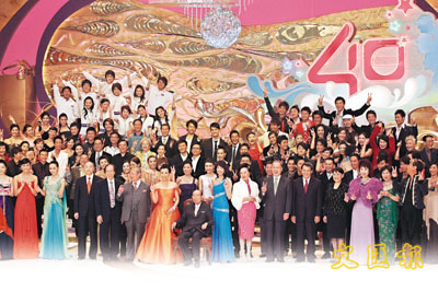中新网11月20日电 香港无线电视为庆祝四十周年台庆,昨(19日)晚举行“万千星辉贺台庆”,今年的台庆可谓双重意义,除了贺无线四十周年外,还有老板邵逸夫爵士迎来百岁生日。当晚全台艺员倾力演出,并起用十全十美司仪阵容:汪明荃、郑裕玲、曾志伟、陈百祥、丘凯敏、陈敏之、叶翠翠、崔建邦、邓健泓及王贻兴。