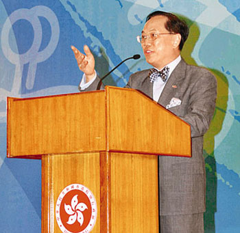 曾荫权呼吁投资者冷静及认清风险。(图片来源:文汇报)