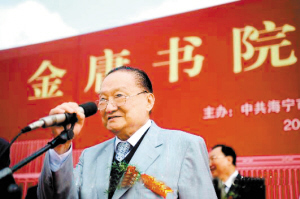 9月17日下午,在浙江海宁“2008金庸小说国际学术研讨会”上,金庸偕夫人查林保怡出现在众人面前。此次金庸回故里,一是欣赏闻名天下的海宁潮,二是为“金庸书院”奠基,重中之重则是参加这次的学术研讨会。