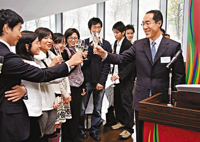 唐英年向出席午餐会的旅日港人和华侨发表演说后,与各人祝酒。 文汇报图