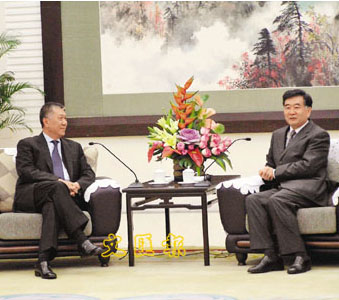 广东省委书记汪洋会晤专程到访的澳门特首何厚铧。(图片来源:文汇报)
