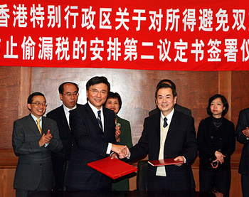 内地和香港2006年8月21日签订的《内地和香港特别行政区关于对所得避免双重征税和防止偷漏税的安排(含议定书)》,自2006年12月8日生效。在落实执行《安排》时,内地和香港对于部分条款释义有不同的意见。经磋商后,去年9月11日对修订《安排》的条款达成共识,并草签订《第二议定书》及互换函件。
